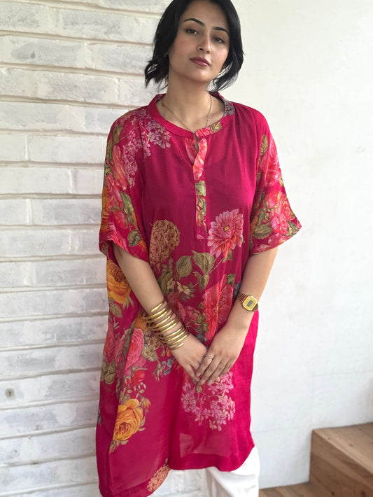 Red Buti Embrodery Mul Cotton Anarkali Dress