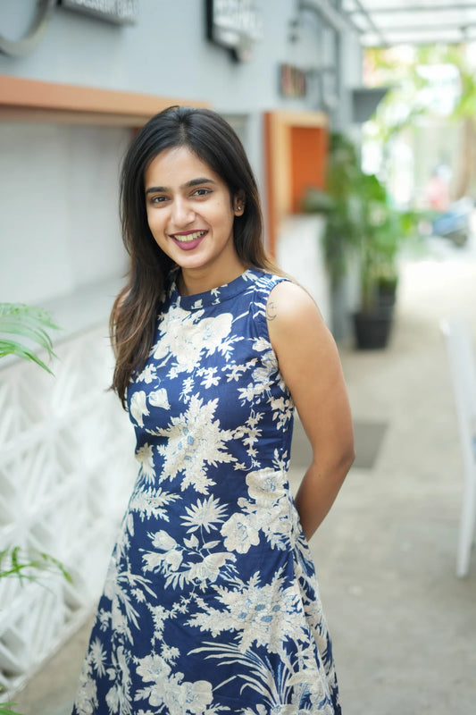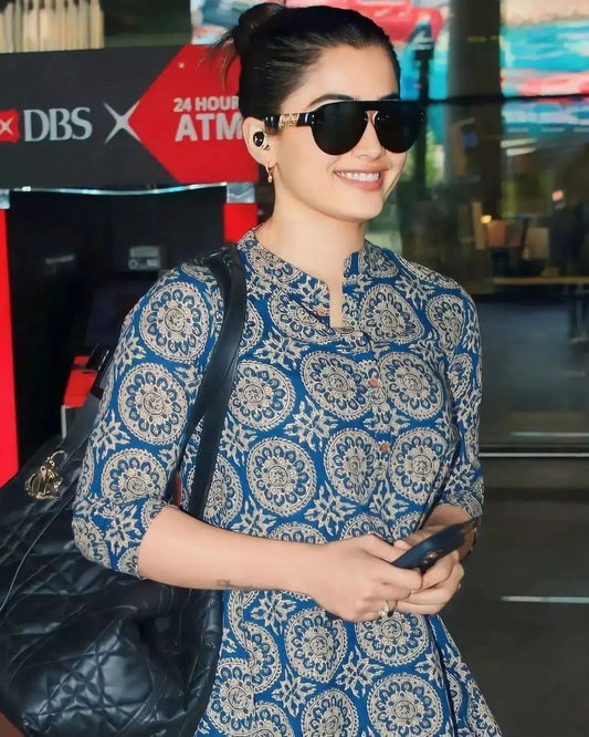 Blue and Green Hand Block Tiger Print Cotton Kurta Set