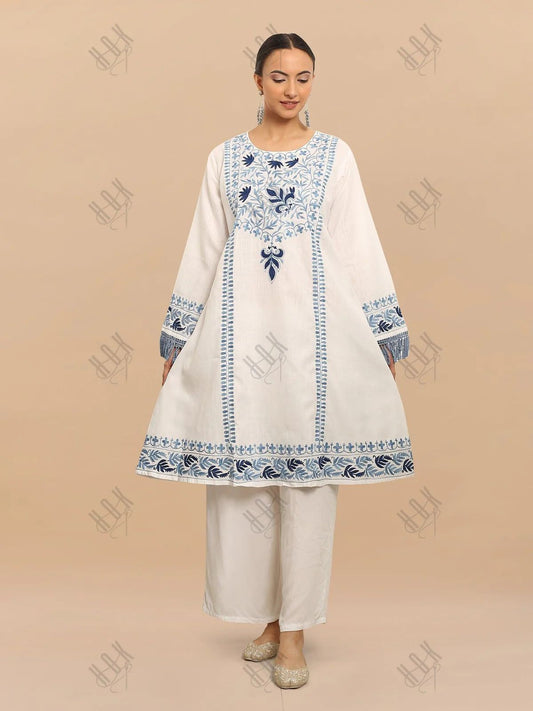Blue Cotton Ikat High-Low Kurta Pant Set