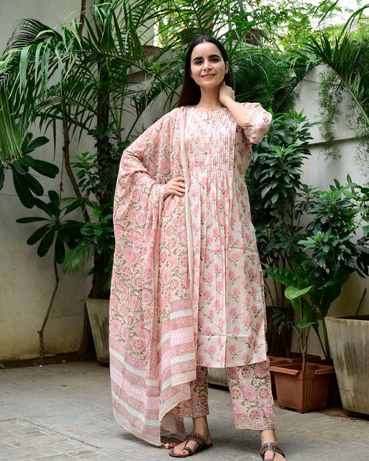PINK FLORAL HANDBLOCK SUIT SET
